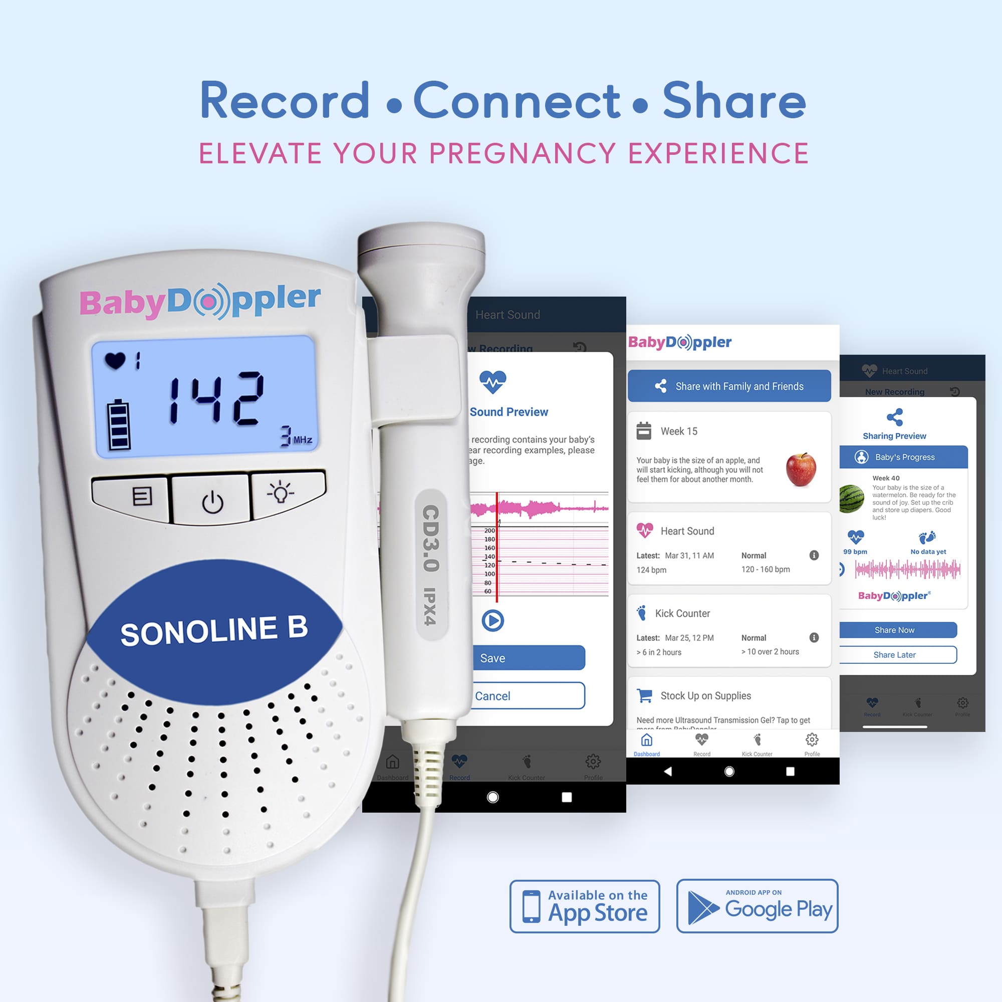 Now you can use your Baby Doppler with the Baby Doppler APP to track record and share your babys progress with loved.